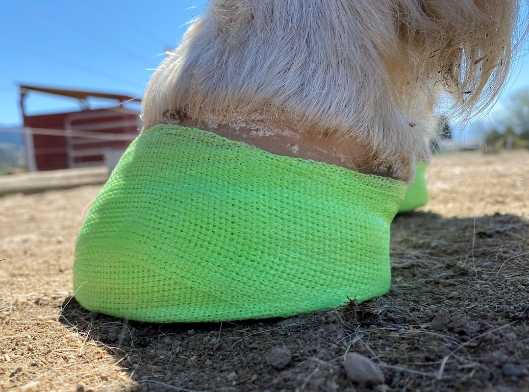 Flash has been doing well, he has gone from unsound to sound on the track where he lives and sound in the sand arena. Because of his progress we have started riding him and I have found he is tender on rocks and hard surfaces. I wanted to try a composite application to see if we can build more sole thickness and continue to ride him. I glued on Easyshoe Performance Shoes, with a soft sole packing underneath and topped the application off with a thin layer of 3M casting.