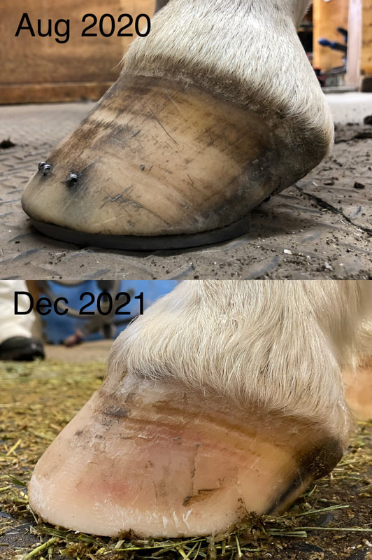 I purchased Flash in August of 2020 to be one of our school horses used during our trimming courses and because he had been diagnosed with Navicular Syndrome by the previous owner's Vet and I wanted to both help improve his condition and study him.