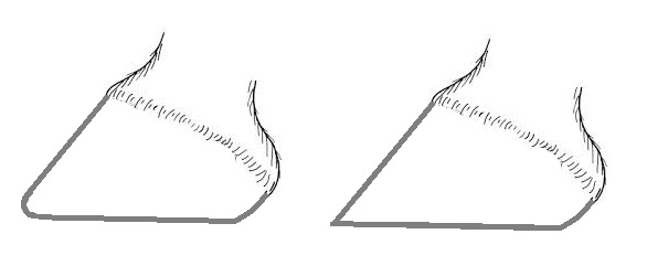 On the left a natural trim with a mustang roll, on the right a traditional pasture trim